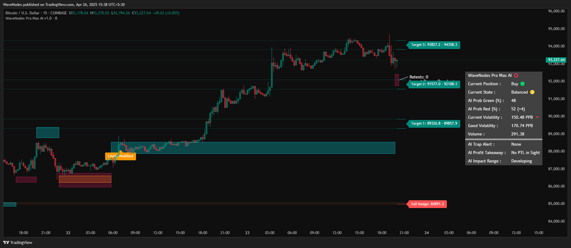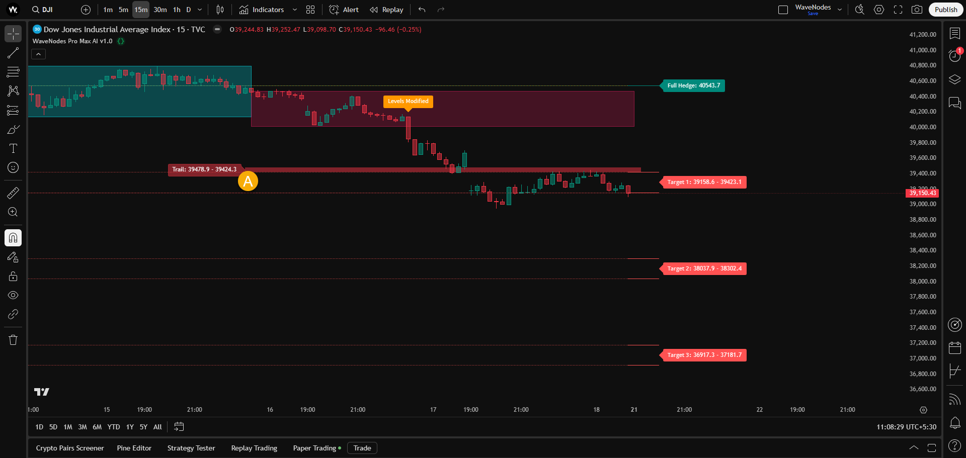 AI dashboard showing critical pieces of information during the trade.